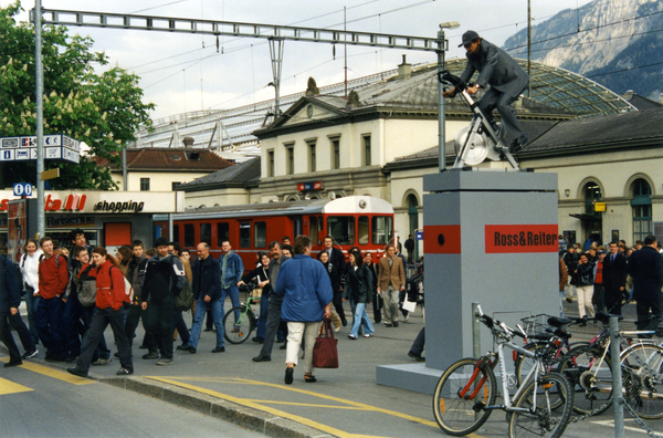 2002 «Ross und Reiter» Performance mit Max Rüdlinger, Bahnhofplatz Chur Pressestimme Ross und Reiter (2.3MB)